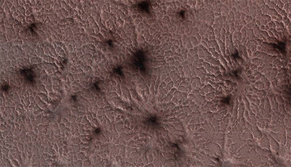 Cientistas do Reino Unido podem ter encontrado a resposta para a origem de curiosas formações localizadas no polo sul de Marte semelhantes a aranhas gigantes. Com o auxílio de uma máquina capaz de recriar condições do Planeta Vermelho, gelo seco e sedimentos parecidos com os presentes no território extraterrestre, descobriram que mudanças de estado de elementos geram o aspecto visual observado por lá – e detalhes do experimento foram publicados na revista Scientific Reports.