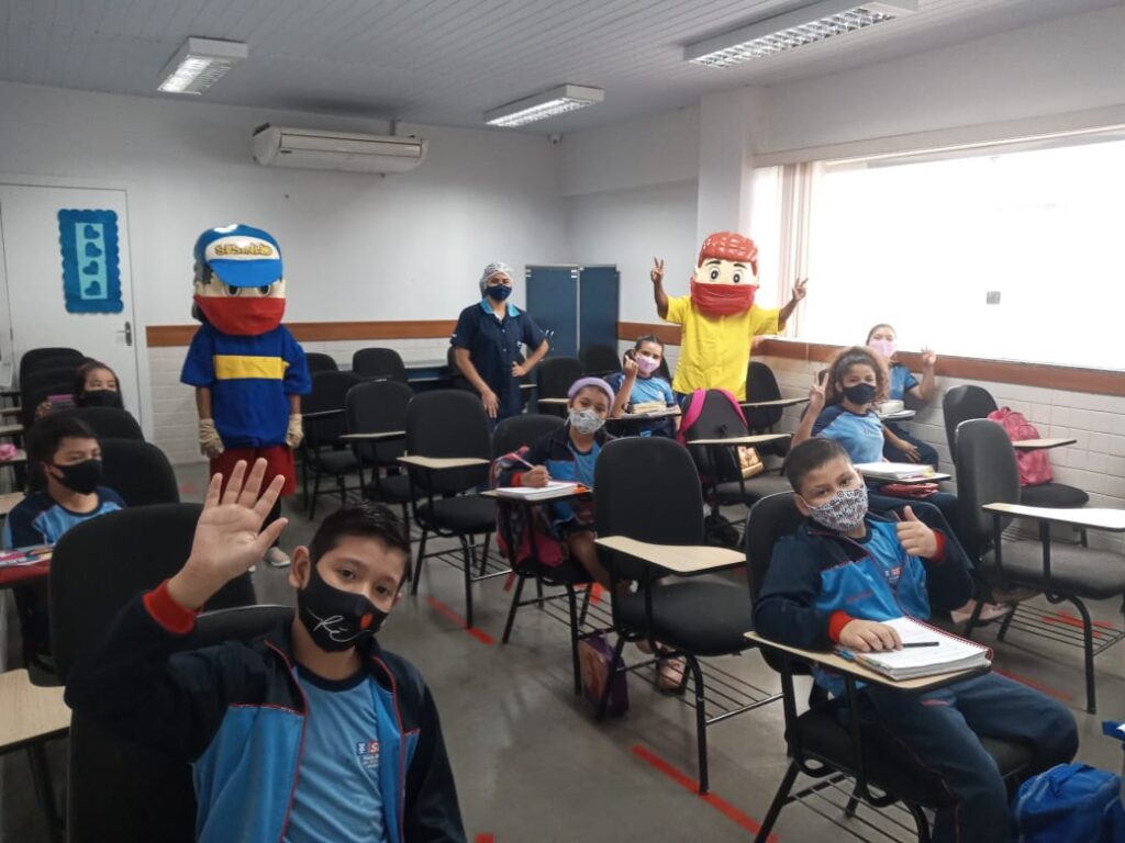 “Neste primeiro momento vamos reforçar a sensibilização com os alunos, explicando a importância dos cuidados que devemos ter no retorno ao ambiente escolar, respeitando as demarcações de distanciamento e com o uso constante de máscaras e álcool em gel e higienização das mãos”, disse a gerente da escola, Viviane Barroso.