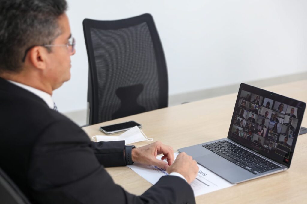 Por videoconferência, o prefeito de Manaus, David Almeida, participou, nesta quinta-feira, 8/4, da solenidade de posse do novo presidente do Tribunal Regional Eleitoral do Amazonas (TRE-AM), o desembargador Wellington José de Araújo, que terá a missão de comandar a Corte Eleitoral no biênio em curso, até maio de 2022.