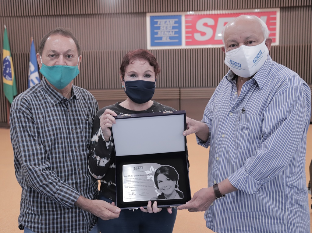 “Em 2012, você, médica experiente e conceituada, ingressou no SESI Amazonas e já liderou o projeto ‘Escola Promotora de Saúde’, com intuito de implementar normas e condutas para prevenção de enfermidades e equilíbrio emocional, estímulo à capacidade criativa e melhor desempenho físico, intelectual e social, na formação de indivíduos mais saudáveis e produtivos”, relembrou Silva, ao entregar uma placa em homenagem a médica que deixa a instituição neste ano de 2021.