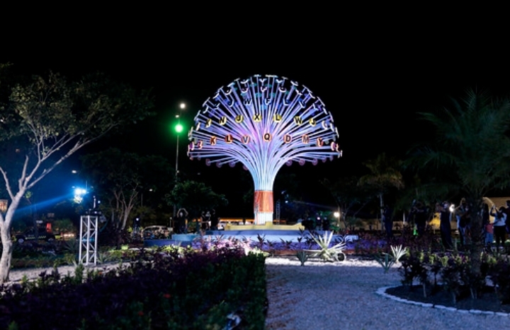 Um dos destaques do espaço é a reconstrução do monumento das Letras na área central da rotatória. Além de uma nova iluminação do letreiro, feita em caixa com backlight. Também foram mudadas as cores da base e das letras que compõem a marca. O alfabeto também foi atualizado com a nova ortografia.