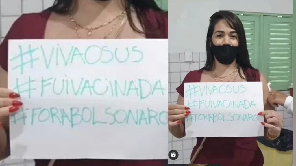 Um dos fatos que gerou a investigação se refere a um cartaz que a oficial levou no dia em que se vacinou no Colégio Militar Tiradentes, em 19 de maio, que dizia: “viva o SUS”, “fui vacinada” e “fora, Bolsonaro.” O local da vacinação é de propriedade da PM.