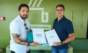 O prefeito de Manaus, David Almeida, recebeu nesta quarta-feira, 24/11, das mãos do secretário municipal de Comunicação, Emerson Quaresma, o primeiro Plano Estratégico de Comunicação da