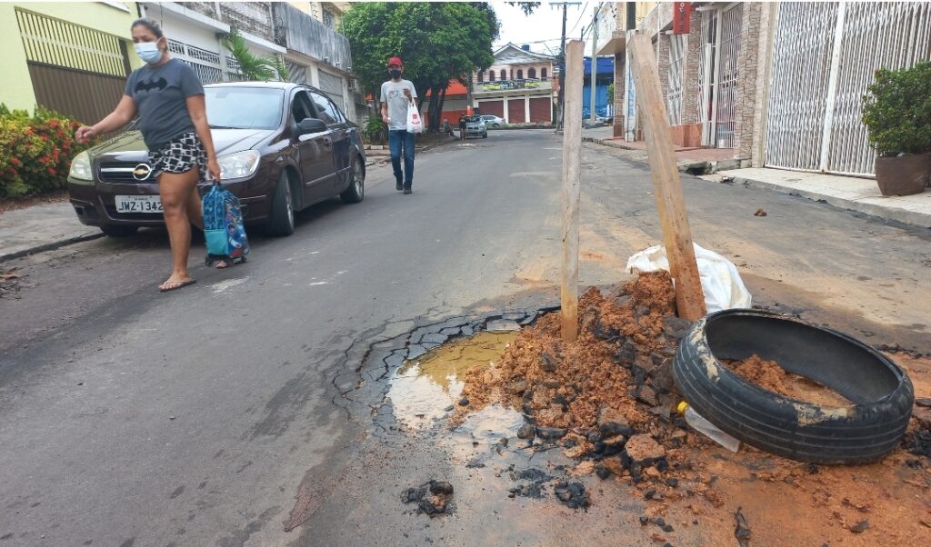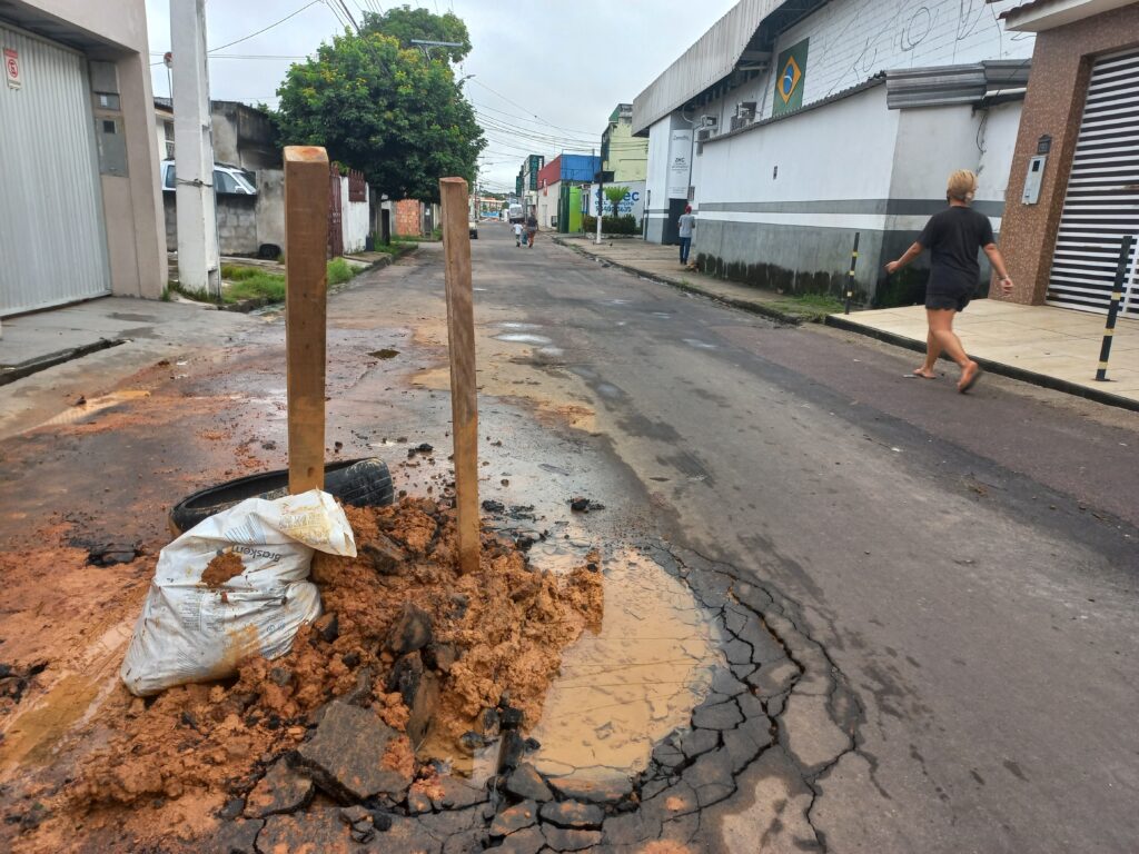 Seu Agnaldo Leal, 63, morador da Rua Vincá, há mais de 10 anos, conta que a população vem sofrendo há dias com esta cratera, formada após um rompimento de um cano de água principal bem no meio da rua, localizada no Crespo, (quase ao lado do Banco do Brasil da Avenida Silves), zona Sul de Manaus.