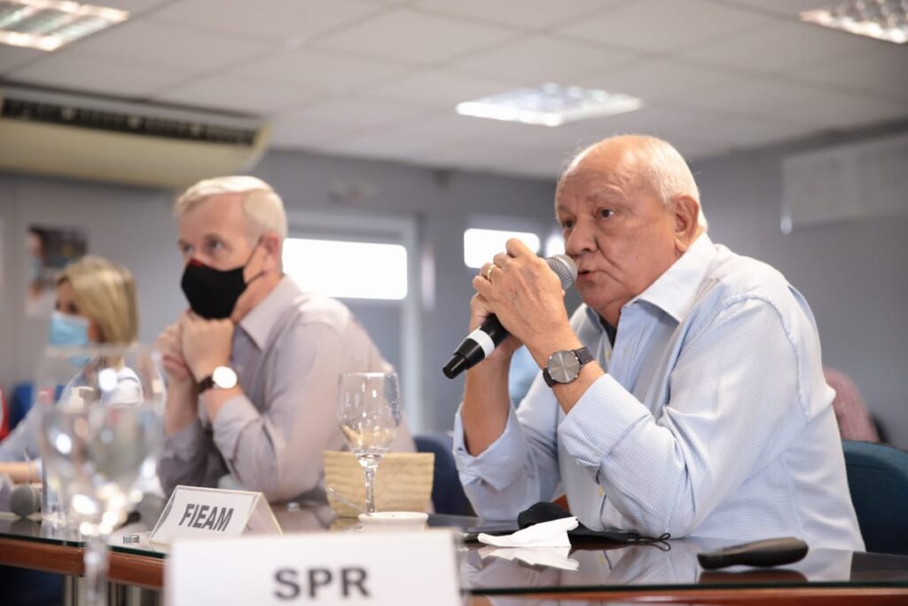A Federação das Indústrias do Estado do Amazonas (FIEAM), representada pelo presidente Antonio Silva, recebeu nesta quarta-feira, 23, reunião prévia da 302ª Reunião Ordinária do Conselho de Administração da Suframa (CAS), presidida pelo superintendente da Suframa, general Algacir Polsin e a secretária Daniella Marques Consentino, da Secretaria Especial de Produtividade e Competitividade (Sepec), do Ministério da Economia, no Barco-escola SENAI Samaúma II.
