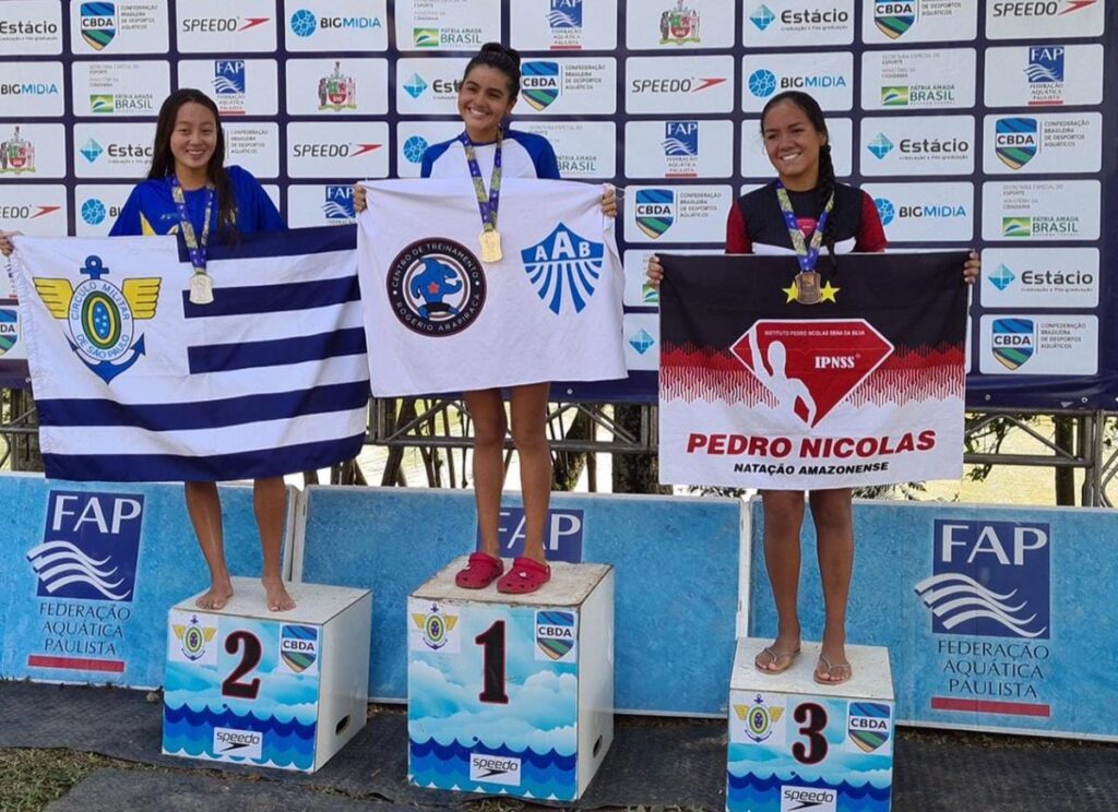A nadadora amazonense Kethleen Manoella, de 15 anos, da equipe Instituto Pedro Nícolas, foi terceira colocada na prova de 10 km da 3ª etapa do Campeonato Brasileiro de Águas Abertas, nos dias 15 e 17 deste mês. Além da medalha de bronze, ela ficou na 9ª posição na de 5 km. As provas foram disputadas na represa Billings, em São Bernardo do Campo, interior de São Paulo.