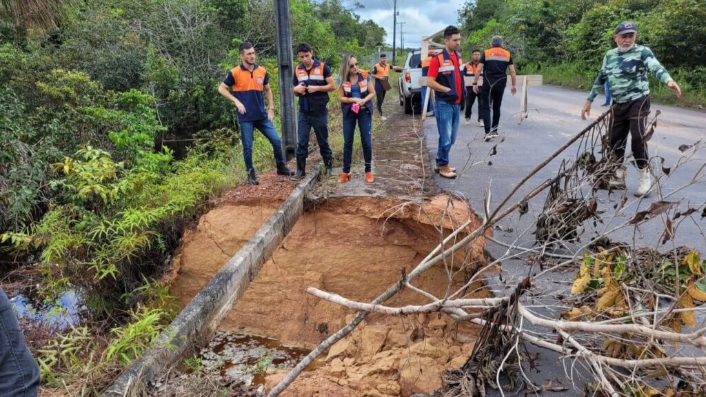 A Defesa Civil do Amazonas comunica a ocorrência de erosão em uma seção da rodovia estadual AM-352, na altura do Km 25, entre os municípios de Manacapuru e Novo Airão, no domingo (05/06).