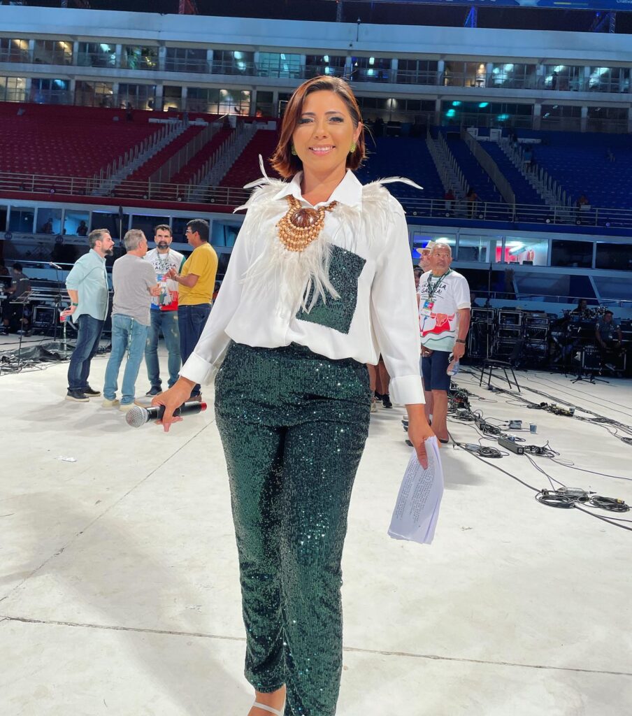 A apresentadora usou as suas redes sociais para destacar sua alegria em apresentar 55° edição do Festival Folclórico de Parintins 2022.