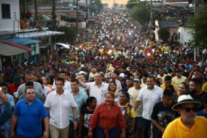 Multidão toma as ruas de Maués para apoiar comitiva do Senador Omar Aziz