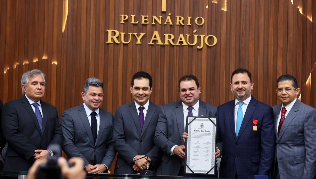 A Assembleia Legislativa do Amazonas (Aleam) homenageou nesta segunda-feira, 8/5, em sessão presidida pelo deputado estadual Roberto Cidade (UB), o subprocurador adjunto do município de Manaus, Marco Aurélio de Lima Choy, com a Medalha Ruy Araújo, maior comenda do parlamento estadual. A propositura da homenagem é de autoria do deputado da 19ª Legislatura, Álvaro Campelo.