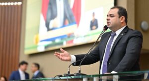 Acompanhado do presidente Lula (PT), o senador Omar Aziz (PSD-AM) desembarcou nesta sexta-feira (4) no município de Parintins para a inauguração da nova subestação de