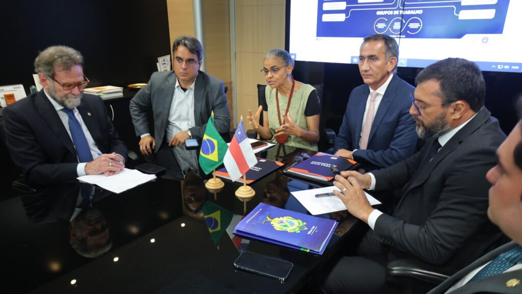 O governador Wilson Lima se reuniu, nesta terça-feira (26/09) em Brasília (DF), com o ministro da Integração e do Desenvolvimento Regional, Waldez Góes, a ministra do Meio Ambiente e Mudança do Clima, Marina Silva, e representantes de mais seis órgãos federais. No encontro, foi definida a criação de uma força-tarefa do Governo Federal para reforçar as ações que vêm sendo realizadas pelo Estado para enfrentar os impactos da estiagem no Amazonas, que já afeta 111 mil pessoas.
