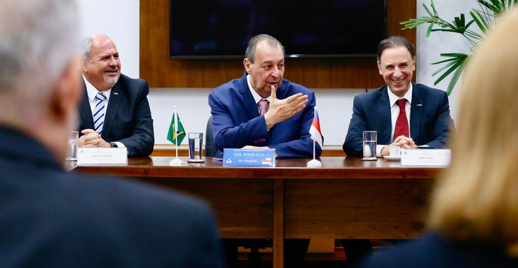 O senador Omar Aziz (PSD-AM) se reuniu na manhã desta terça-feira (24/10), em Brasília, com representantes da Câmara dos Dirigentes Lojistas do Amazonas. Durante o encontro, diversas questões foram levadas pelos empresários, principalmente relacionadas à logística de transporte de mercadorias, à importância da BR-319 e preocupação com mudanças na legislação tributária.