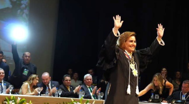 “Na primeira vez que assumi a presidência, em 2017, aqui mesmo nesse Teatro, vi uma cena que infelizmente jamais irá se repetir. Meus pais, José Araújo Rodrigues e Terezinha Lins Rodrigues, estavam sentados na primeira fileira. Mesmo sem que dissessem nada, eu podia sentir o amor, carinho e felicidade nos olhares de ambos”, disse a conselheira ao relembrar dos pais, já falecidos.