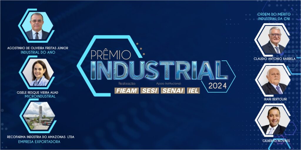 A Federação das Indústrias do Estado do Amazonas (FIEAM) vai comemorar em 25 de maio, “Dia da Indústria”, com homenagens ao “Industrial do Ano”, Agostinho de Oliveira Freitas Junior, à “Microindustrial do Ano”, Gisele Resque Vieira Auad, e à “Exportadora do Ano de 2023”, Recofarma Indústria do Amazonas Ltda”. Em sessão especial, coordenada pelo presidente da FIEAM, Antonio Silva, no SESI Clube do Trabalhador, às 19h30, os empresários Claudio Barrela, Irani Bertolini e Gilberto Novaes receberão a Medalha da Ordem do Mérito Industrial da Confederação Nacional da Indústria (CNI).