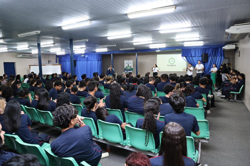 Após três dias de capacitação, o programa Aluno Ouvidor da Ouvidoria do Tribunal de Contas do Amazonas (TCE-AM) finalizou mais uma ação em uma escola da capital amazonense, nesta sexta-feira (14). Desta vez, o programa foi realizado no grêmio estudantil da Escola Estadual Senador Petrônio Portella, localizada no bairro Dom Pedro, na zona Centro-Oeste de Manaus.