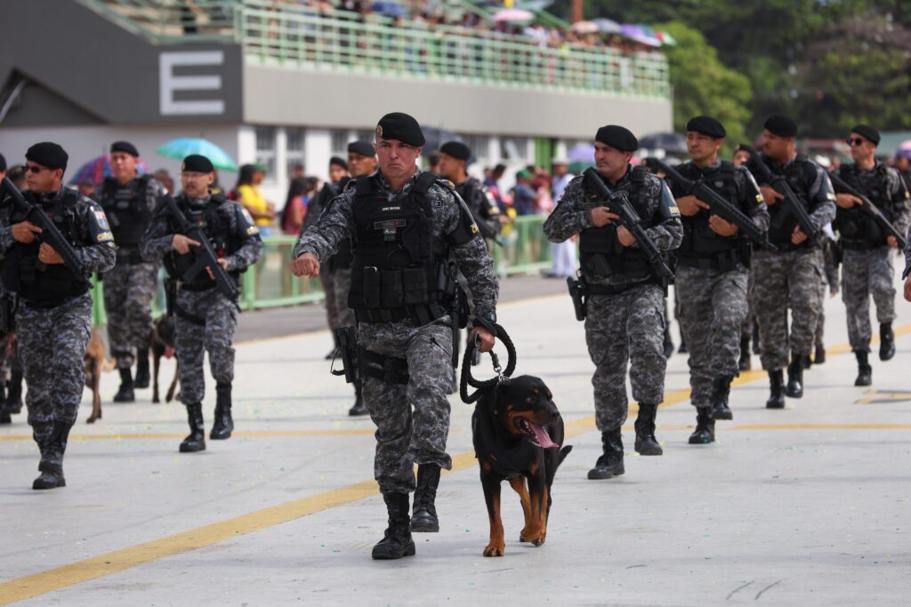 O tradicional desfile de 7 de setembro aconteceu na manhã deste domingo (07/09), no Centro de Convenções de Manaus, o Sambódromo, com a presença das Forças de Segurança do Amazonas. Mais de 1.500 militares do Estado compareceram ao evento, que celebra a Independência do Brasil.