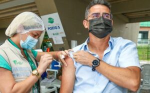 O prefeito de Manaus, David Almeida, compareceu, nesta quinta-feira, 30/12, no posto de vacinação contra a Covid-19 instalado no Centro de Convenções de Manaus, o sambódromo,